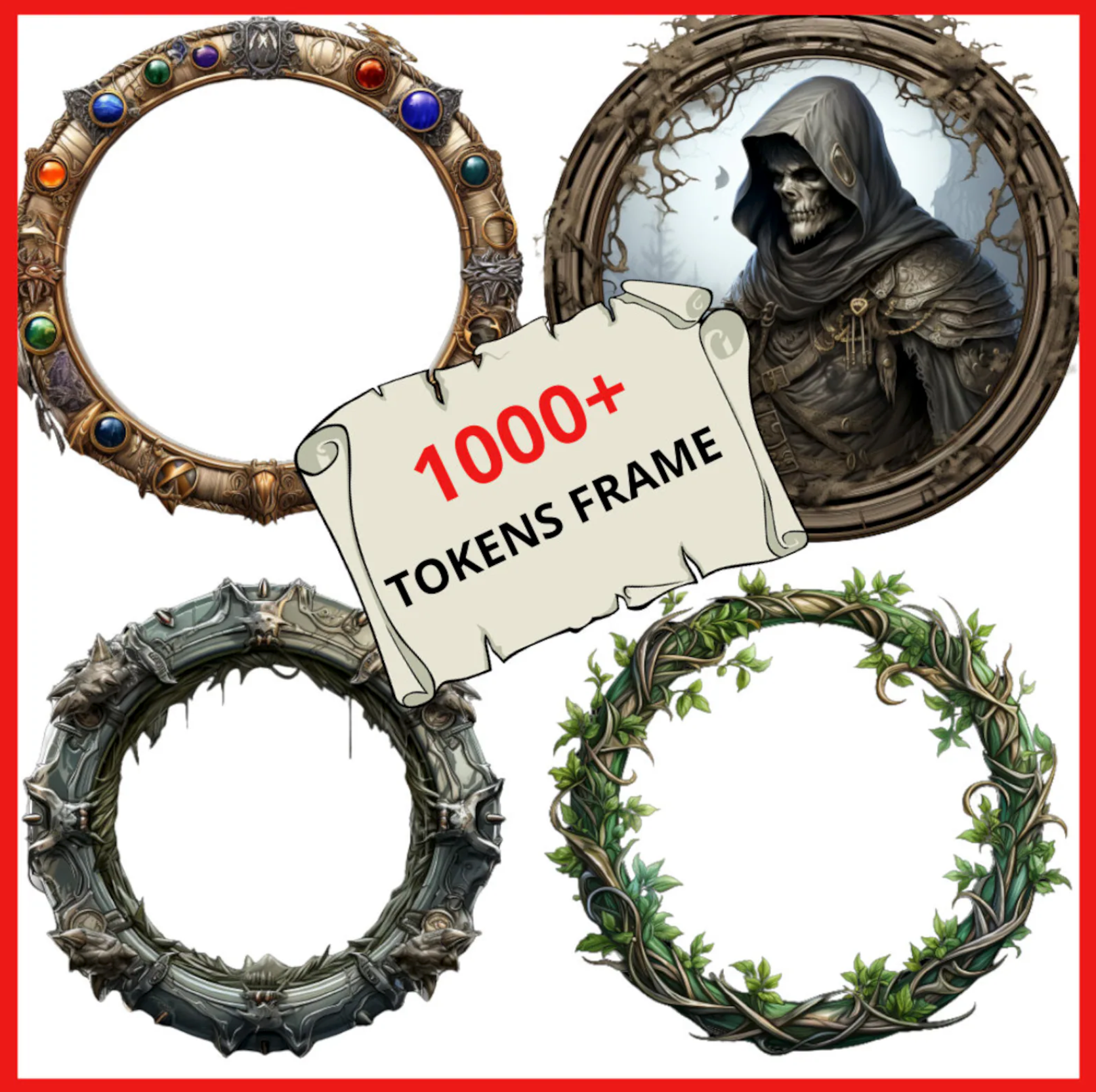 This pack includes over 1,000 high-quality token borders, perfect for tabletop RPGs, virtual tabletops, and creative design projects. They’re ideal for character sheets, tokens, portraits, and custom assets. Each border is a unique design you won’t find anywhere else, delivered in high-resolution with transparent backgrounds for easy use.